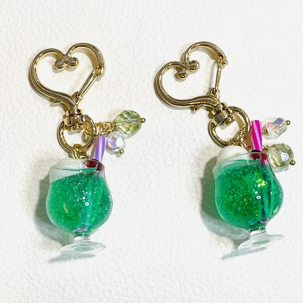 クリームソーダも、メロンソーダ色をお2つ💚。7・8クリームソーダキーホルダーはおひとつ1100円🍹