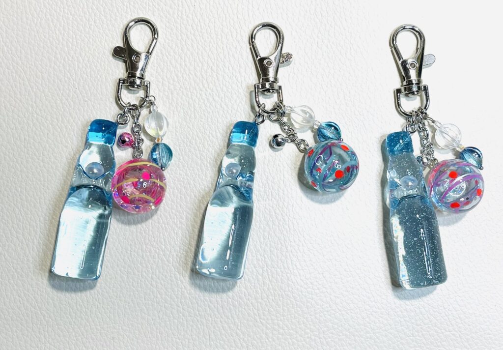 1〜3キラキラ☆ラムネとヨーヨーのキーホルダー 3個だけご用意できました😅月末のイベント用が、ぜんぜん足りてないので頑張らなきゃです💪
