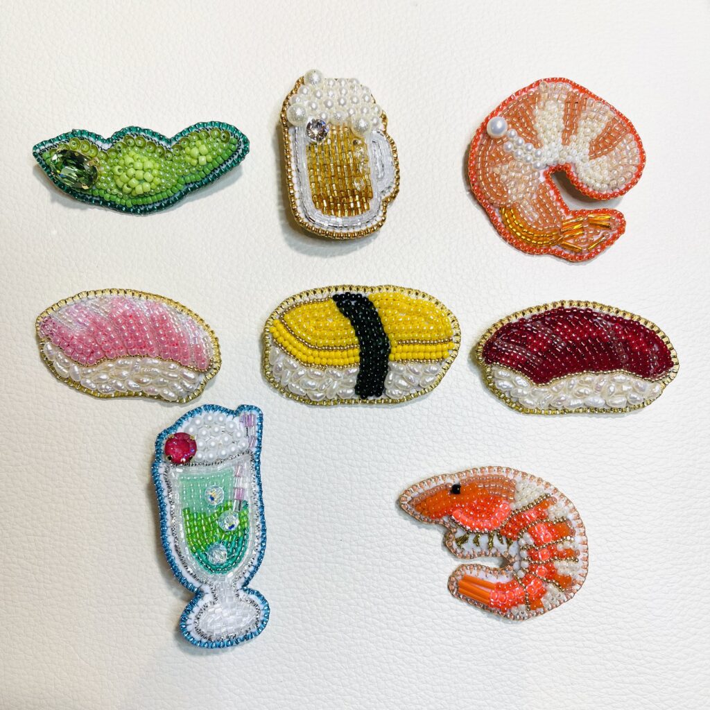年末年始にひたすらチクチクした、ビーズ刺繍ブローチの8点です😀🎊