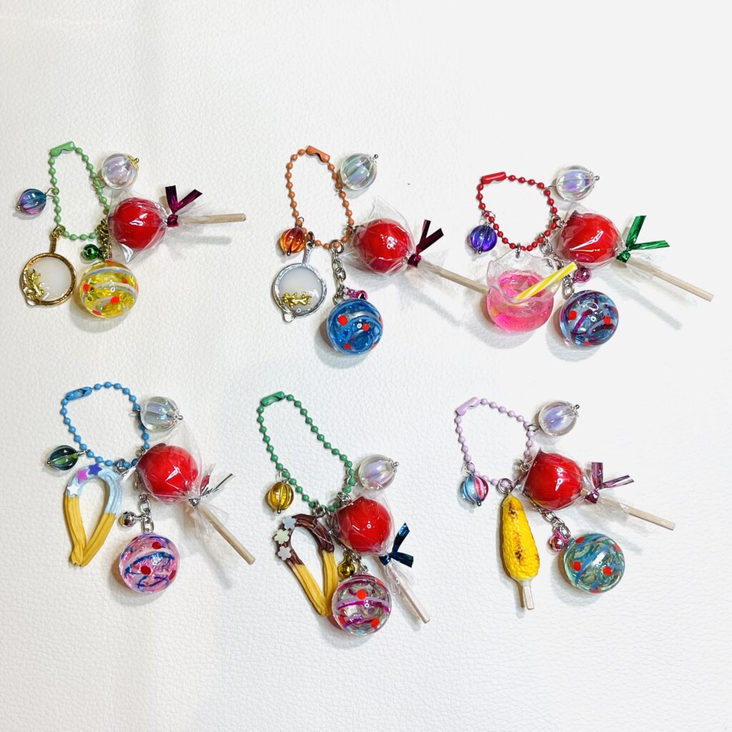 4〜15→お祭りキーホルダー(4・5は新作の「金魚すくわれ」、6金魚鉢ジュース、7・8チュロス、9焼きとうもろこし、10チュロス、11ラムネ、12イカ焼き、13べっこう飴、14フルーツ飴パイン、15うちわ)おひとつ999円