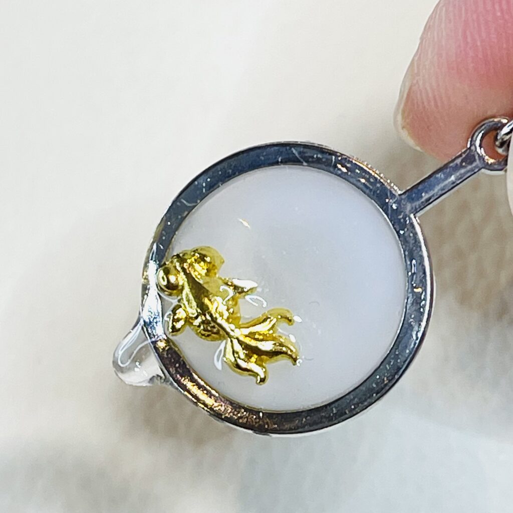 お祭りシリーズの新作🎉✨「金魚すくわれ」は、ゴールドまたはシルバーのポイに、金魚さんが「今まさにすくわれた💦」の瞬間を作りました(๑˃̵ᴗ˂̵) こんな感じです⬇️