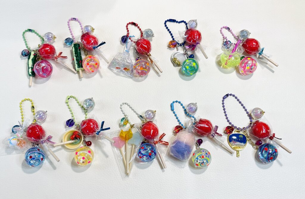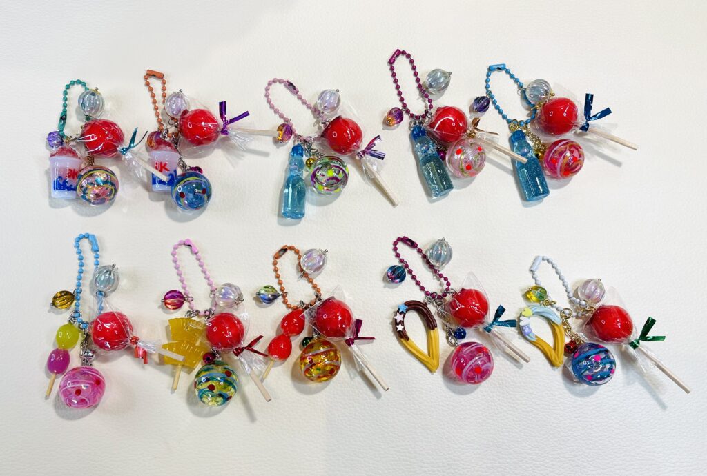 出品久しぶりなので、お祭りキーホルダー多種で30個、ご用意しました。新作のかき氷もあります😊🍧