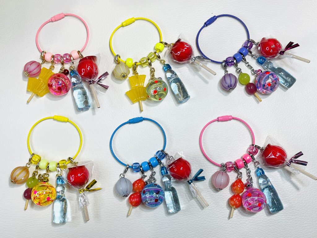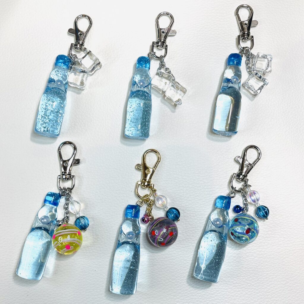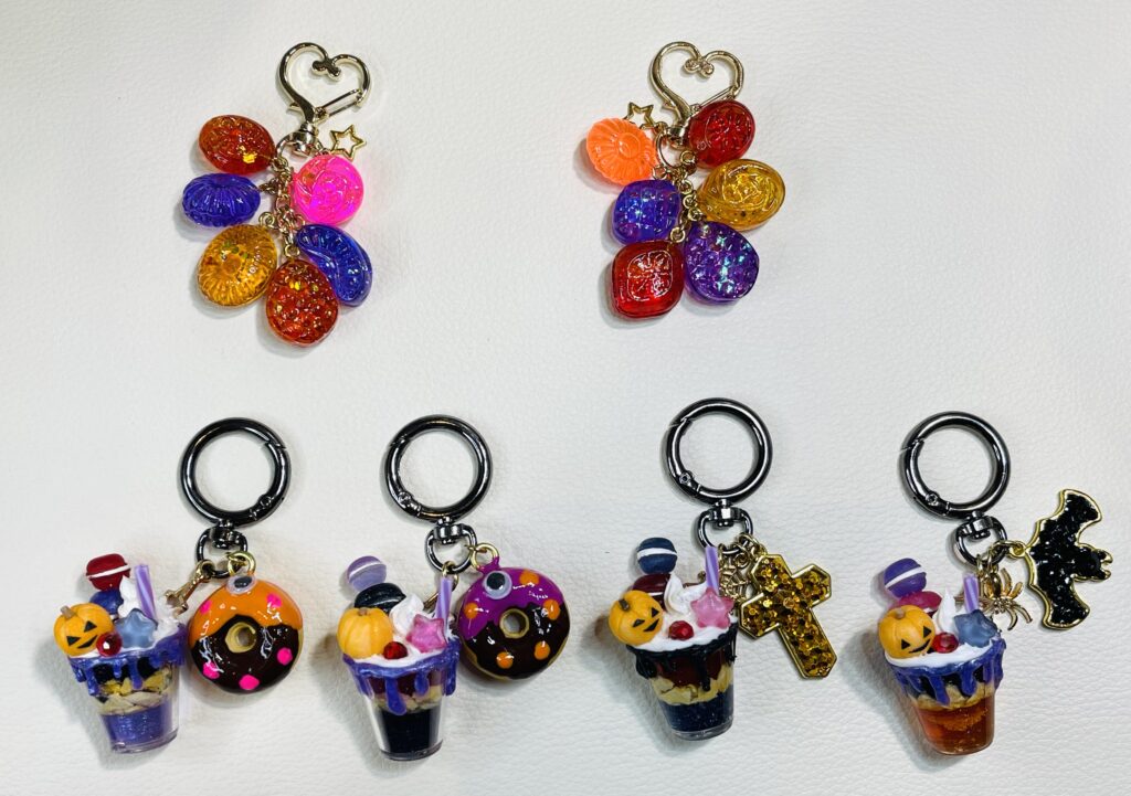 1・2ハロウィンカラーのドロップキーホルダー、3〜6ハロウィンドリンクキーホルダー