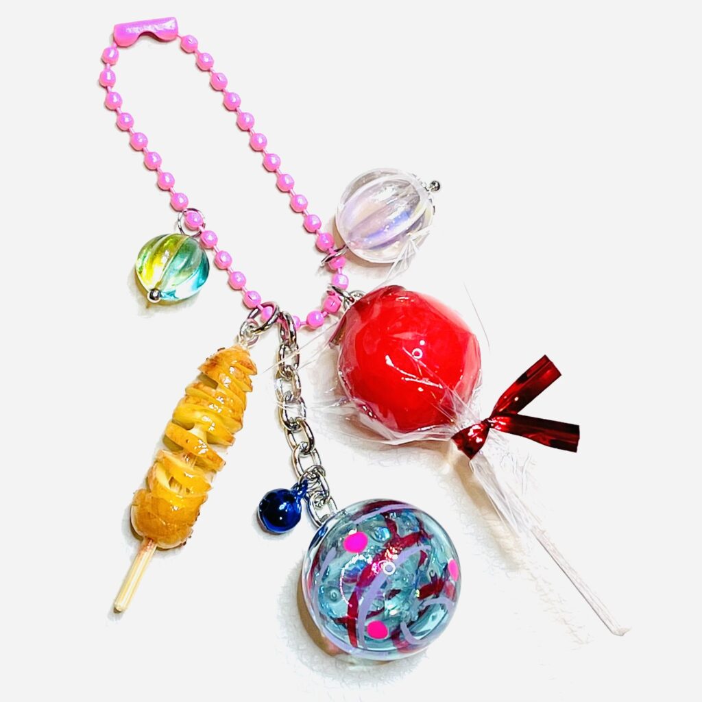 お祭りキーホルダーのりんご飴🍎にだけ、全体の✨軽量化✨のために使っています。細かい作りこみができない粘土なので、簡単な形状に向いています。